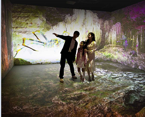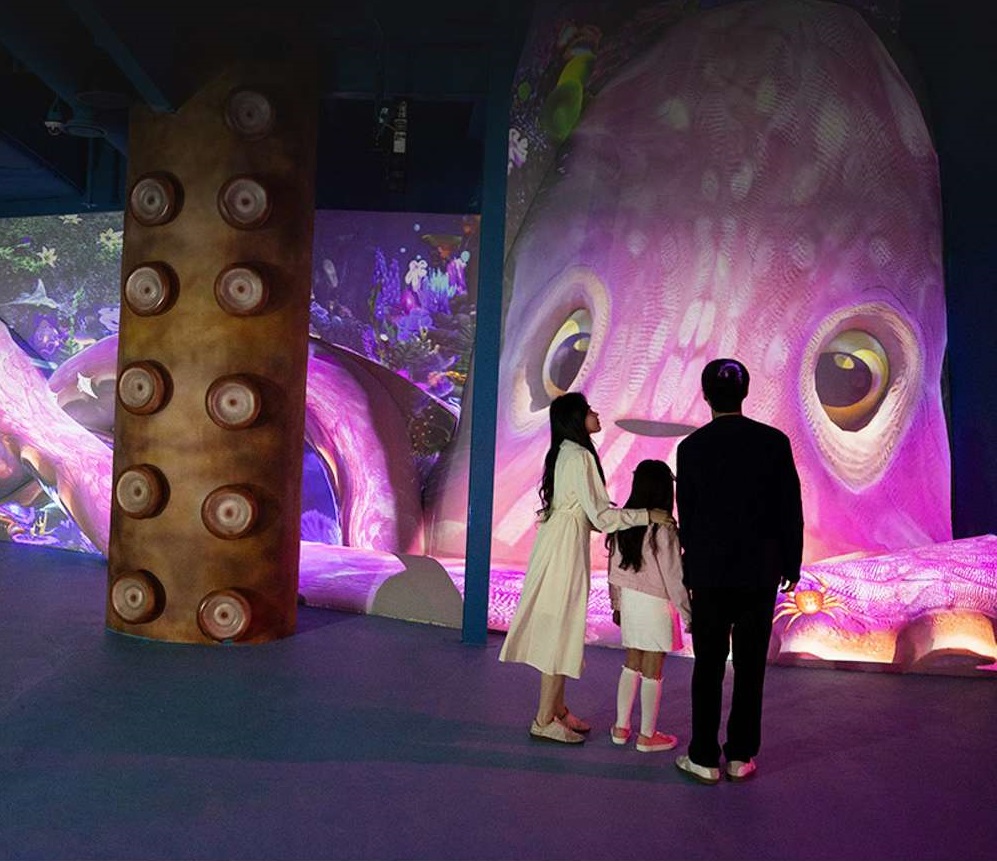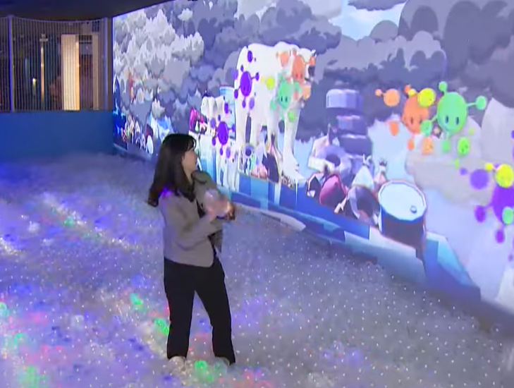 예를 들어 정글 한가운데 서 있는 관람객 옆으로 하마가 지나다닌다거나 대형문어‧물고기와 함께 바닷속을 헤엄치는 듯한 체험, 우주의 블랙홀로 빨려 들어가는 듯한 경험 등 다양하고 신기한 체험이 가능하다고 합니다. 특히 교육적인 내용을 기반으로 하는 체험형 놀이 시설도 많아 더욱 유익하다고 하는데요. 예를 들어 공을 던져 유해물질을 맞추면 사라지는 놀이를 통해 환경에 대한 경각심을 키울 수도 있다고 합니다.