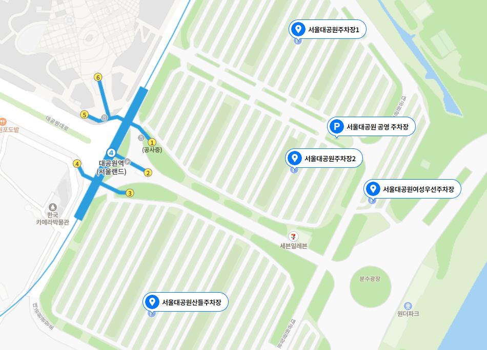 원더파크와 가까운 주차장은 총 5군데인데요. 워낙 방문객들이 많다 보니 도착 전에 미리 잔여자리 확인하시고 방문하시는 것도 도움이 될 듯 합니다. (주차 문의: 02-502-7636)