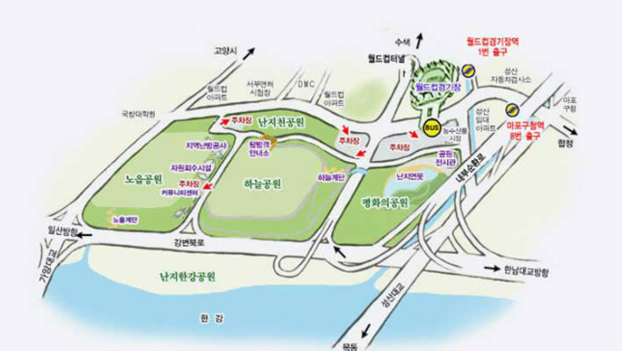 차를 가지고 오시는 분은 노을공원주차장에 주차하시면 됩니다. 다만 공간이 협소하다 보니 주말, 휴일 등 성수기 12:00~17:00 주차장 진입이 어려울 수 있어요. 11시 이전에 도착해서 주변에서 시간을 보내시다가 캠핑장 입장시간(오후 2시)에 맞춰 입장하시는 편을 추천드립니다. 자리가 없다면 주변 난지천공원 주차장이나 평화의공원 주차장도 있습니다.