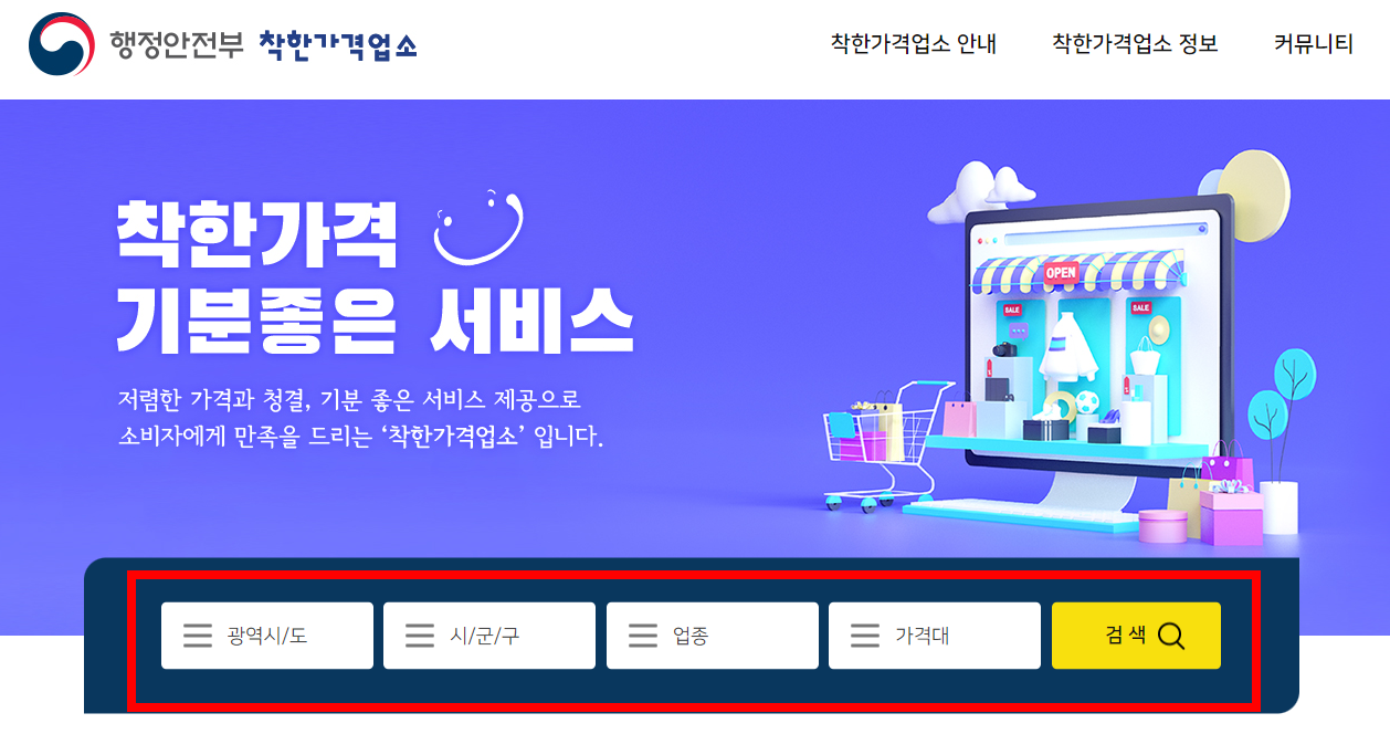 1. 먼저 착한가격업소 홈페이지에 들어가세요.