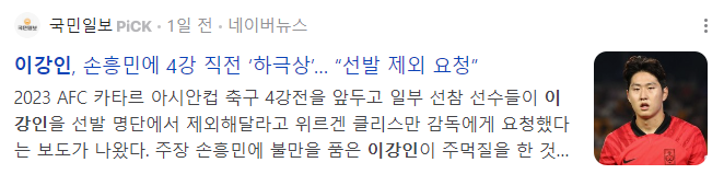 "지난 아시안컵 4강전을 앞두고 손흥민 형과 언쟁을 벌였다는 기사가 보도되었습니다."