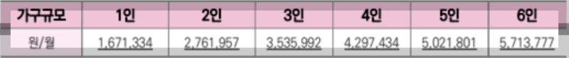 2) 소득은 기준중위소득 75% 이하여야 합니다. 1인 167만 원 / 2인 276만 원 / 3인 353만 원 / 4인 429만 원에 해당하지요.